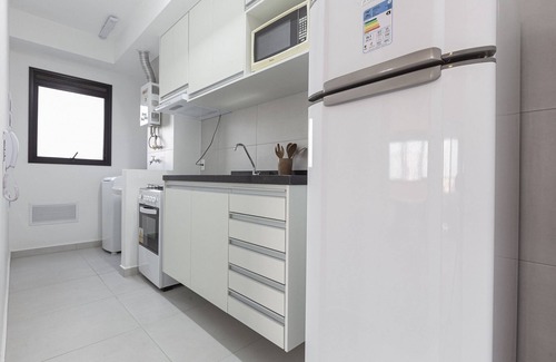 Complete and spacious apartment with a very cozy bedroom, equipped living room, full kitchen and a nice balcony to relax and enjoy the view. The condominium is a chapter in itself, it has a wonderful swimming pool and a resort-style artificial beach, as well as a complete gym, skate park, gazebo, kids area, pet area, among other facilities. It's a great place to stay and enjoy the best of Brás and also enjoy the day in a complete club.