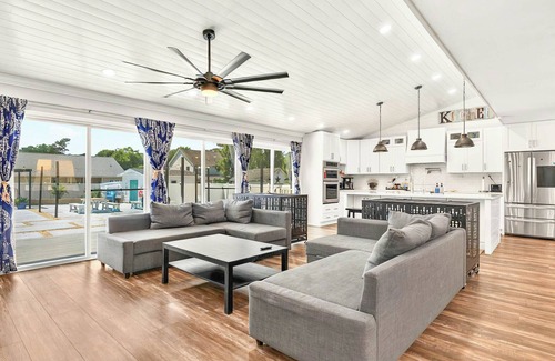This beautiful rental property is just 15 minutes from the beach offering the perfect getaway for large groups. With a private pool for relaxation and fun, the spacious home comfortably sleeps up to 12 guests. The large kitchen makes it easy to prepare meals for everyone, whether you're cooking together or hosting a special gathering. The home is also animal-friendly, so your furry friends are welcome. Enjoy the ideal blend of comfort, convenience, and location for an unforgettable vacation!