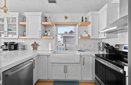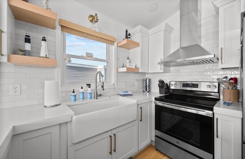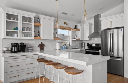 Fully stocked with appliances, cookware, Keurig + drip coffee maker, pantry staples, wine glasses, and more.