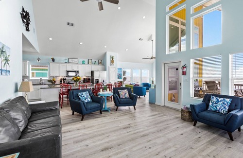 Shenanigans: Beachfront 5BR Home w/Cargo Lift + Stunning Views offers a luxurious and picturesque backdrop for your wedding celebration. Nestled in the serene Gilchrist area of Bolivar, this exquisite beachfront property is designed to accommodate large wedding groups seamlessly.