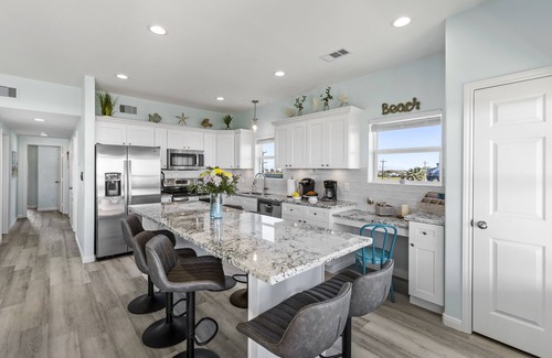 Beachcombing: Explore the pristine shores of Port Bolivar, where Sangria Sunset by BV: NEW Beachfront 5BR, Sleeps 18, Multiple Decks! offers you direct access to sandy beaches. With endless opportunities to collect seashells and enjoy the coastal scenery, this is a perfect way to unwind before your wedding festivities.