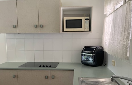 Step into a carefully curated space where vintage meets modern comfort. The living room invites you to unwind with its cozy furnishings and the patio showcases views of sparkling “Shelly Beach” just a few steps away. The well-equipped kitchen is ideal for whipping up light meals. Or, take a short leisurely stroll to one of the many cafés and restaurants just minutes away.