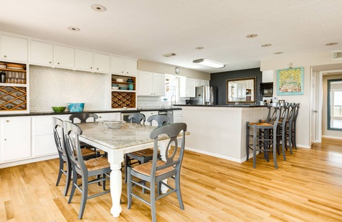 Step inside to take advantage of the wall of windows that showcases front row Gulf views. The living room has a large leather sectional and plush armchairs to relax in. Cook up your favorite family meals in the updated kitchen with granite countertops and stainless steel appliances. The breakfast bar makes it easy to prep, serve, or seat 4 people. The nearby dining table seats 6, and there’s a long bar, wine storage, and wine refrigerator perfect for snacks or tableside serving.