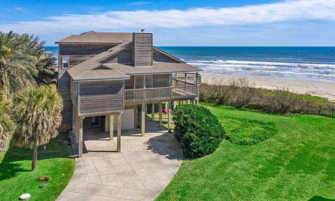 Beachfront Beauty with Huge Deck & Stunning Views | House in Galveston