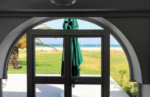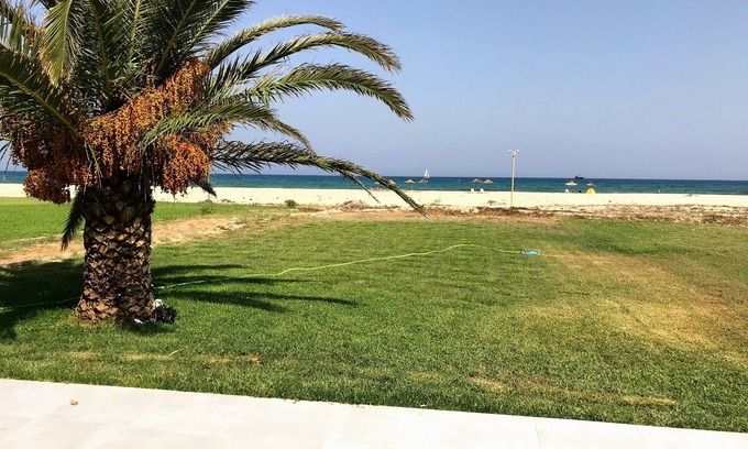 Amazing bungalow on the beach, with outstanding views. Located in one of the best resorts in Hammamet, with access to the pool and plenty of other amenities. It has 1 queen suite, another bedroom with 3 bed and a third smaller room as well a fully equipped kitchen. 2 parking spots are also included Location is perfect in between Yasmine Hammamet (La Medina, Marina) and Hammamet center(old town Medina) .
