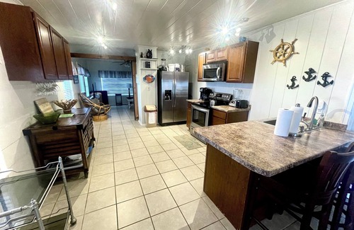 This home features two bedrooms as well as two dual living-rooms with one sleeper sofa per living room. A large screened porch for dining and watching the sunset. A fully stocked kitchen for preparing your catch of the day.