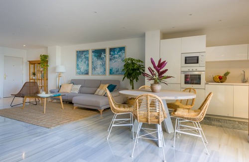 Our 90sqm roomy apartment is well equipped in a luxury building with marble floors. You can rest and sleep camly, hearing the sea. Stay in WIFI with your family, wash your clothes, cook your favorite dish and live like a local in Marbella.