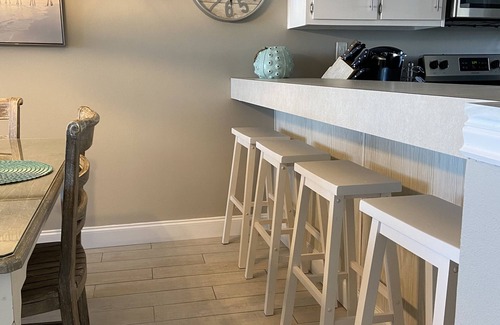 As new owners, we are so excited for our guests to enjoy all of our NEW renovations and amenities!! Our goal is for you and your family to enjoy a fun-filled, stress-free vacation experience. We have poured our hearts and souls into this remodel and hope you will love it as much as we do! And we are still not done! More updates are coming this Fall! This condo features NEW ceramic wood plank flooring, NEW carpet, NEW stainless steel appliances, 3 NEW Smart TV’s (including a 65 inch TV in the family room), updated bathrooms, NEW sheets, pillows, bedding, towels, and a fully equipped kitchen (Keurig, traditional coffee maker, blender, crock pot, etc.), updated lighting, beachy decor and has just been freshly painted througout.