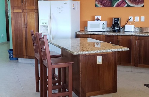 The kitchen is furnished with all the appliances you would need to cook your favorite meals. Laundry room with washer and dryer. WiFi fiber optic internet access, local phone and long distance phone with free long distance calls to the states. Living room has a great view of the bay. Smart TV with DVD player with movie library and also book library. A great way to start the day is on the balcony with your morning coffee watching the sun rise or watching for whales. End the day watching the sun set.