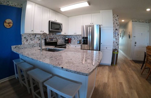 As a traveler, you'll delight in the array of amenities that await you. Unwind in the sparkling outdoor pool, enjoy complimentary assigned on-site parking and enjoy the convenience of the full-size in-unit washer and dryer. Curl up and indulge in your favorite shows on the smart TVs using the provided Spectrum TV App or your own favorite streaming option. Complimentary 600 Mbps high-speed internet/Wi-Fi access is provided throughout the condo. A QR code is displayed in the condo to scan for easy WiFi connection.