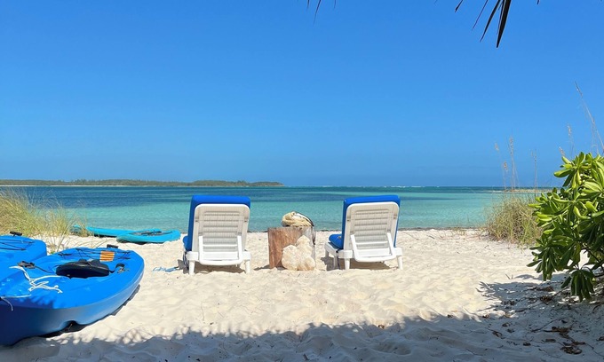Just steps aways from one of top-rated beaches on Eleuthera, 'Thereabouts' on Winding Bay, is a lovely, family-friendly vacation rental waiting to welcome you home. With magnificent views in every room, the open, light-filled living area is decorated in an updated Bahamian style with loads of comfort. It features cathedral ceilings, and has sliding doors on either side to allow for cool island breezes. This is a beach house built for people who love the beach, with two large patios, outdoor showers, and plenty of privacy. Wake up to a gorgeous sunrise then spend the day snorkeling, kayaking with sea turtles, exploring the two+mile beach and surrounding Cays or just relaxing in a hammock in our beachside Chickee Hut. You'll be surprised how fast the time goes once you slow down. At night, discover the wonder of watching a panoramic night sky instead of TV. There are no screens (TV's) here ( but, yes, to wifi). What you will find are are plenty of games and puzzles and books. This is your chance to unplug and discover what relaxation really feels like.
