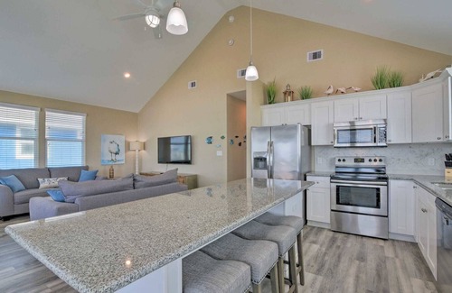 This pet-friendly (with pet fee) beachfront home named the 'Regal Seagull' is perfect for a family vacation to coastal Texas and features an open interior and uninterrupted ocean views.