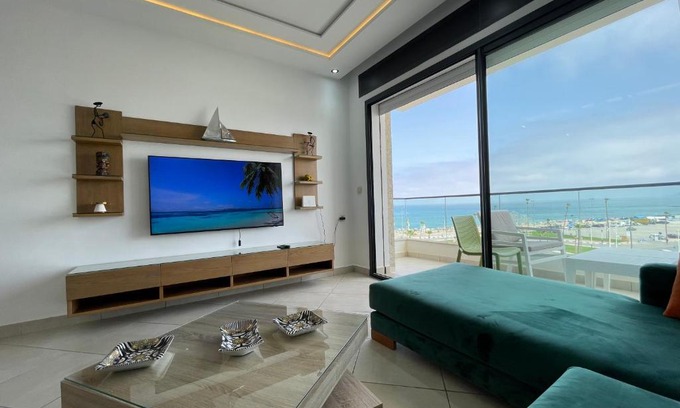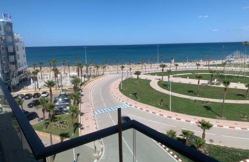 Beachfront High Standard Flat offers accommodations in Martil, a 2-minute walk from Martil Beach. This beachfront property offers access to a balcony, free private parking, and free Wifi. The accommodation provides an elevator, full-day security, and currency exchange for guests. Providing a terrace and sea views, the spacious apartment includes 2 bedrooms, a living room, satellite flat-screen TV, an equipped kitchen, and 2 bathrooms with a walk-in shower. Towels and bed linen are featured in the apartment. This apartment is allergy-free and non-smoking. There is a coffee shop, and a mini-market is also available. For guests with children, the apartment features a baby safety gate and a children's playground. A car rental service is available at Beachfront High Standard Flat, while fishing and hiking can be enjoyed nearby. Sania Ramel Airport is 2.5 miles away.