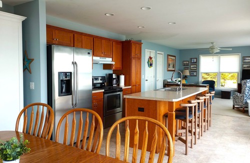 1800 square foot home with a full kitchen and dining room opens to a 16x20 deck that overlooks your 100-foot-wide beach and above-described wonders. Deck is connected by steps to a paver patio, which also overlooks the beach and connects to a finished furnished garage that serves as a covered patio.