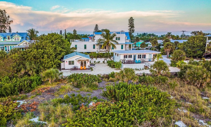 Welcome to Low Tide, a charming beachfront bungalow just steps from Anna Maria Island’s turquoise waters and white sandy beaches. This cozy two-bedroom, one-bath home offers mesmerizing ocean views from the front patio, a fully equipped kitchen, and a comfortable living space perfect for relaxing with family or friends. Located a block away from Pine Avenue’s boutique shops, restaurants, and water adventures, Low Tide is your ideal island escape for making lifelong memories.