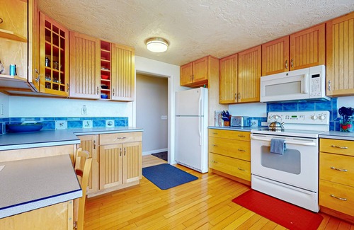 Inside, the house boasts elegant Brazilian Cherry hardwood floors in the kitchen and living room, complemented by new appliances throughout. Stay cozy on cool evenings with the propane fireplace insert, available for use during the winter months. The comfortable furnishings and incredible views make this beach house the perfect choice for your vacation in Sequim.