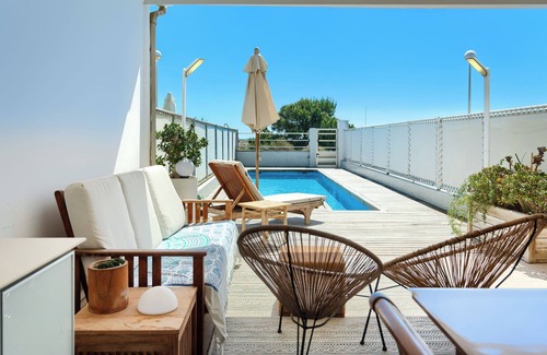 It is an apartment with a private pool, porch, 3 bedrooms, 3 bathrooms and 3 terraces to enjoy the sun, the sea breeze and a good breakfast with sea views.