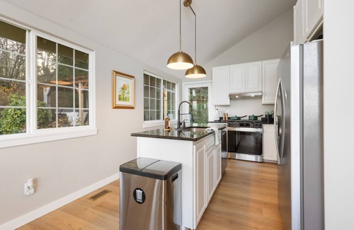 This conveniently located home is a dream come true for travelers seeking both convenience and natural beauty. Enjoy the fully equipped kitchen; a culinary haven, boasting modern appliances, and ample space for preparing meals. Create memories around the large dining table or cozy up on the incredible couch by the fire.