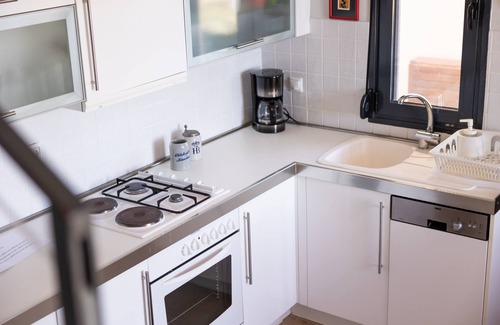 The fully equipped kitchen allows you to prepare delightful meals while savoring the scenic beauty of the Aegean. Modern appliances and ample space make cooking a pleasure.