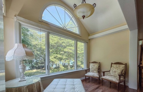 St. Patrick on the Chesapeake Bay is a stunning home that showcases distinctive European flair, making it a peaceful and private vacation destination. This exceptional property has just undergone a complete renovation and now shines in the splendor it truly deserves. The beautiful 4,500-square-foot home is nestled amid mature hollies, dogwoods, and pine trees, along with vibrant flowers and statuary, all overlooking a pristine private sandy beach. The property is perched on a high bluff at the point where the bay meets the Atlantic Ocean. The 1.5-acre manicured Mediterranean garden was artistically designed and created by the owners, who moved to the shore from Italy in 1989. The home is spacious, featuring two large living rooms that boast views of the bay and the enchanting garden. There are several spots to contemplate nature. An amazing terrace extending over the high bluff offers the most scenic vantage point to observe dolphins, seabirds, and watermen collecting their daily catch. Beneath the deck lies a magical lookout room where you can reflect and absorb the quiet beauty of the bay. The westerly views provide spectacular sunsets over the water, while the property is also conveniently close to a state park and the historic Victorian bayfront town of Cape Charles. Meandering, mysterious paths invite you to explore a heavenly, hidden natural corner where you can truly connect with Mother Nature. This is a true oasis, set apart from the hustle and bustle of everyday life, yet it remains close to the many amenities the area has to offer. The home itself is generously spacious, characterized by large picture windows and cathedral ceilings. What makes this home unique is the elegant European style evident in the furnishings and overall decor. As you enter the main front door, you are welcomed into a large open living room/foyer that features an impressive fireplace and French doors leading onto the picturesque deck, which visually embraces the lush lawns and stunning Chesapeake Bay beyond. An ideal place, furnished with a grill, dining area, and seating area. The other living room is an outstanding, wood-paneled 500-square-foot area, complete with a fireplace and three charming bay windows, each framing a different landscape view of the park-like garden. The huge owner's suite is furnished with museum-worthy, custom-made Neapolitan mahogany furniture from the last century and features a quaint sitting area with a bay window, providing a spectacular view. The Bayfront State Park, just a few minutes away, offers numerous hiking trails, a fishing pier, and a boat ramp. The historic Victorian seaside town of Cape Charles is only 10 minutes away and features shops, a variety of restaurants, a historic live theater, galleries, and live events, including enjoyable outdoor free summer concerts.