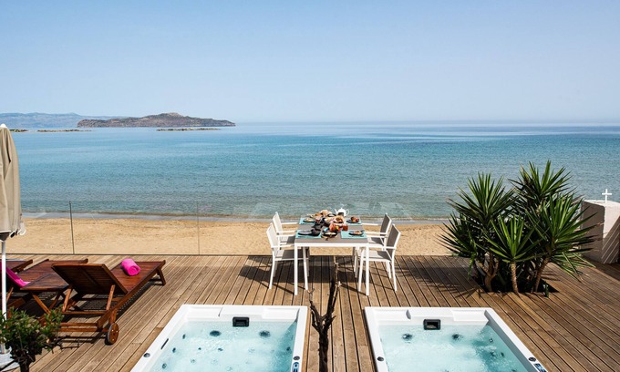 Beachfront luxury villa with hot tub & sunset view | Villa in Chania