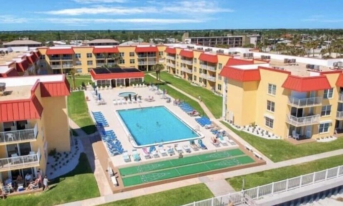 Welcome to the Golden Rose Condo. Spectacular ocean view two bedroom two bath Condo located directly on the no drive beach of New Smyrna Beach. Get the added benefit of the drive on beach if your heart desires right down the street. You’ll enjoy a Resort lifestyle with amazing amenities. (Outdoor heated pool, kiddie pool, shuffleboard, laundry facilities on each floor, and free parking) Located just across the street is a brand new playground, basketball courts, and public showers and bathrooms.