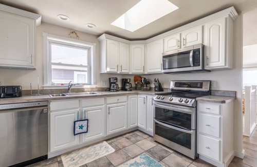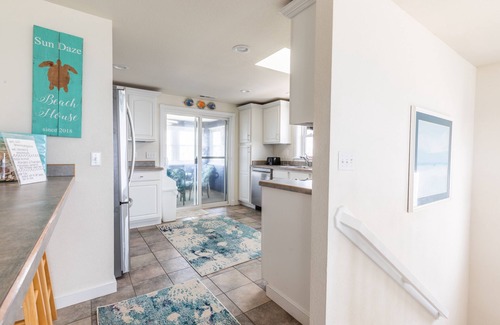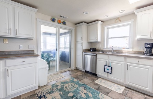 Inside this Kitty Hawk rental, you'll be greeted by an open living area. Complete with beach-inspired decor, comfy seating, and a flat-screen TV, it's the perfect place to relax and catch up with friends and family. Enjoy full ocean views right from the living room and dining area or step outside on the furnished sun deck and take in the sights. Sit back and relax in one of the polywood chairs and enjoy your morning cup of coffee while watching the sunrise or just take a minute to yourself to listen to the ocean breeze, you're on Outer Banks time at Sun Daze! When it's time to prepare meals, Sun Daze features a fully equipped kitchen with spacious countertops and stainless steel appliances that make meal prep a breeze during your visit. The dining room table seats 8 and there's additional adjacent seating for 2. There's also bar seating for 4 near the kitchen as well. Want to take advantage of the beach breeze? Head out to the sun room where you'll find patio seating for 6. Sun Daze features 6 spacious bedrooms that are well-appointed and provide you and your guests with the perfect space to get some much-deserved rest during your stay. This Outer Banks rental is the perfect place to spend a week or two by the sea. NO PETS ALLOWED and NO SMOKING.