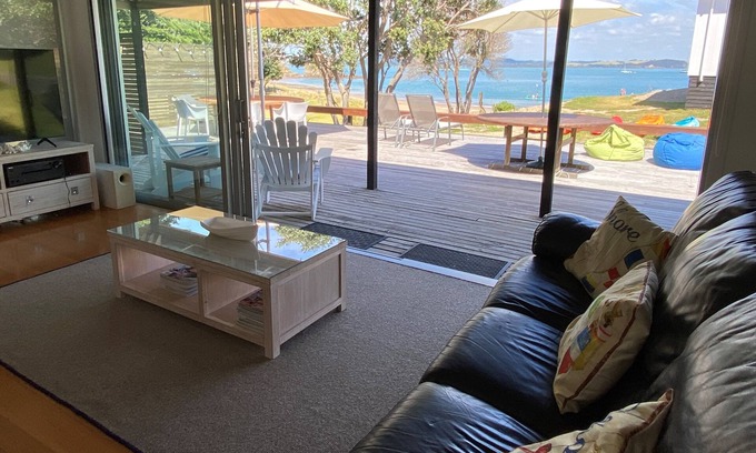 Located on Tapeka Point beach - just two minutes from historic Russell village with island boat tours, attractions, shops, vineyards and restaurants. Outdoor living is superb with a large furnished deck, privacy screen, sun loungers and BBQ grill.