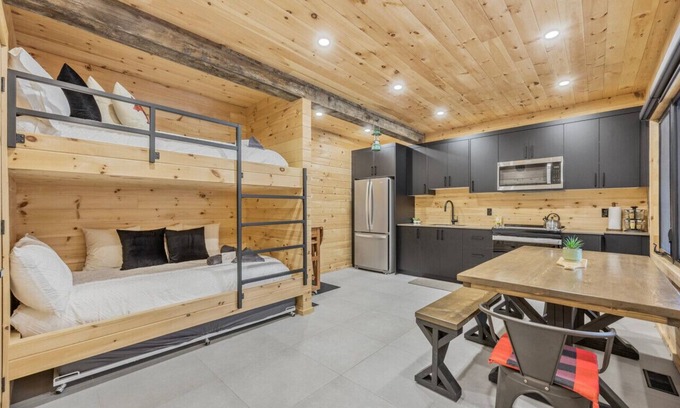 The Wooded Pine Suite is part of a charming 5-plex located on a spacious property with 270 feet of stunning shoreline. The property feels like a small resort, with the comforts and luxuries of home, featuring brand-new interiors and modern amenities. The large sandy beach is perfect for families with children, and there’s plenty of space for sunbathing!