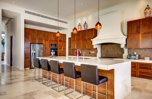 The villa’s open-concept design is ideal for large groups or family gatherings, while thoughtful extras like a home gym, steam room, media room, wet bar, and rooftop terrace ensure there’s always a quiet corner when you crave some privacy.