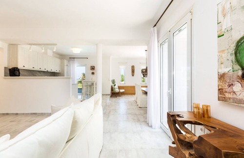 Mavi Beachfront Villa is a recently renovated property, designed to provide a car free holiday, as its located within walking distance from restaurants and shops and just a stones throw away from a sandy beach. The 3 bedroom Villa covers 110 m2 and can comfortably accommodate 6 people in beds and up to 7 guests if necessary. Mavi Villa is decorated with great care, elegant taste and a summer vibe, getting you in a holiday mood as soon as you enter it.