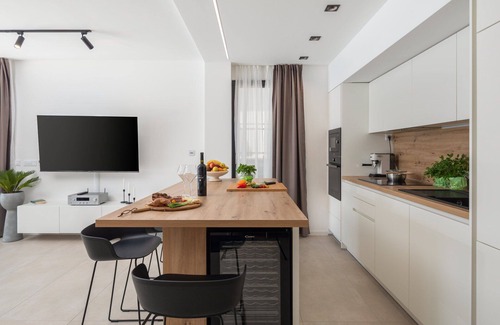 Situated right by the beach, this villa provides stunning Adriatic Sea views and direct beach access, allowing guests to fully embrace the Croatian coast. The outdoor area includes a large terrace and a lush garden where guests can enjoy meals al fresco, and a wood-fired barbecue brings a special touch to outdoor dining. The heated pool is accessible year-round, and the villa is equipped with floor heating, ensuring comfort in every season.