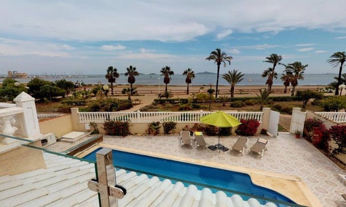 Just 25 minutes from the new Murcia airport, this large luxurious villa sits on the shore of the Mar Menor lagoon in the very popular residential beach resort of Los Urrutias / Estrella de Mar with its beautiful well-kept gardens.