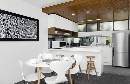 Decorated by a local interior designer with Aboriginal art that will inspire you. Located conveniently near the beach and a patio to have a cuppa, watch the ocean roll in or fall asleep to the sound of the waves. It has a full kitchen complete with oven/stove top, microwave, dishwasher, fridge, toaster, tea & coffee making facilities; a dining area with basic cutlery and crockery; a living area with a flat screen TV; the bathroom has all your needed items including a hairdryer; and even a washing machine with dryer, iron and board, so you have everything you need in a home away from home.