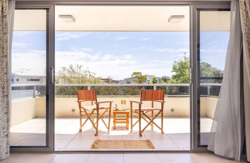 Upstairs, the master bedroom offers a generous walk-in robe and an adjoining bathroom with a two-way ensuite. This private retreat includes a comfortable lounge area and a north-facing balcony, perfect for sipping your morning coffee or enjoying evening drinks. The master suite also includes a TV for your entertainment.