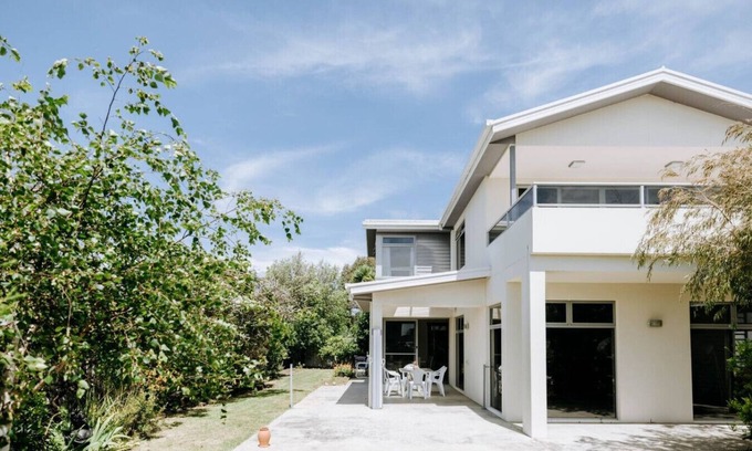This home offers plenty of privacy and a spacious outdoor area. Inside, you`ll find a 2-storey, 3-bedroom, 2.5-bathroom home with 2 large living areas and a well-equipped kitchen. Just 50m to tennis courts and a skate park, with local shops and cafes nearby—making it perfect for families or groups.