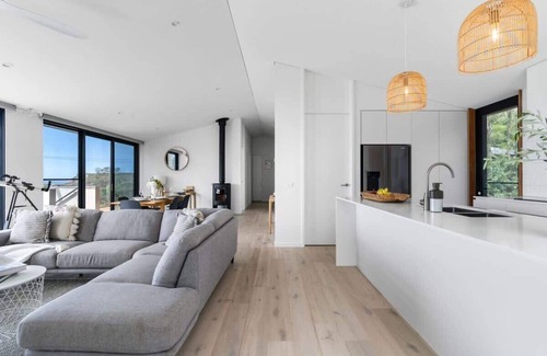 The fully equipped kitchen features premium Smeg appliances and a coffee machine to start your mornings right. Outside, the Weber BBQ and pizza oven are perfectly positioned on the deck, so you can cook and dine while soaking in the stunning panoramic ocean views.
