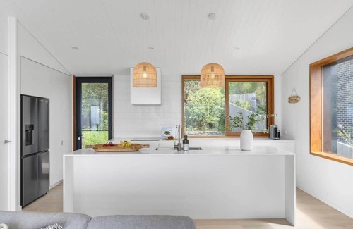 Beachside In Kioloa - Absolute ocean front New Build! Sit back and relax on the deck of this gorgeous beach bungalow. Watch the whales go by, soak in the view or take a short stroll to the beach. Everything you need is here to enjoy a beachside getaway.