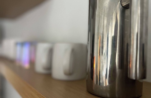• cupboards stocked with hairdryer, curling iron & natural self care products