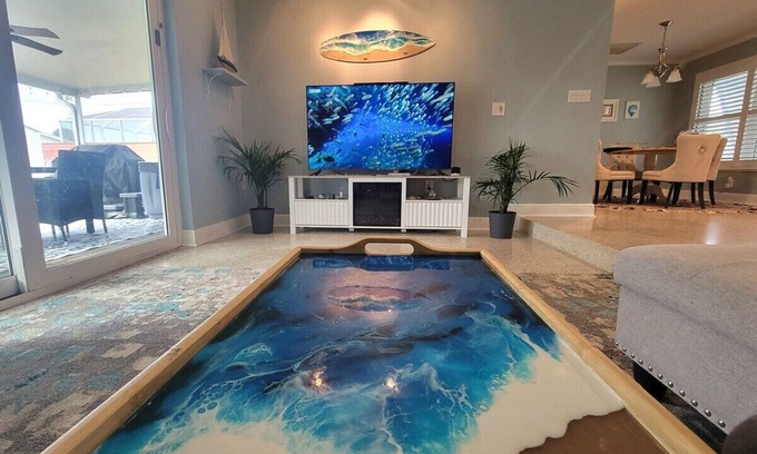 Beachy 3/2 Pool Home | Hot Tub | Walk to Beach is located in Sea Park Homes. Beachy 3/2 Pool Home | Hot Tub | Walk to Beach provides accommodation, featuring Fireplace/Heating, Parking, Private Pool, among other amenities. This House features Fireplace/Heating, Parking, Private Pool, to make your stay a comfortable one.