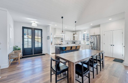 This remarkable property is designed to cater to both relaxation and celebration. Enjoy the amenities including a heated saltwater pool, hot tub, and spacious outdoor areas perfect for mingling with guests. The open floor plan features large windows that fill the space with natural light, creating a warm ambiance. With a modern kitchen and ample seating throughout, you can host everything from rehearsal dinners to post-wedding brunches. Plus, the private dock allows for beautiful lakeside activities, adding extra charm to your wedding festivities.