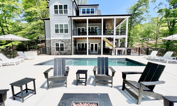 - Beacon Pointe, New 7-Bed Lakefront Luxury w/Covered Decks + Heated Salt Water Pool, Hot Tub, Dock!