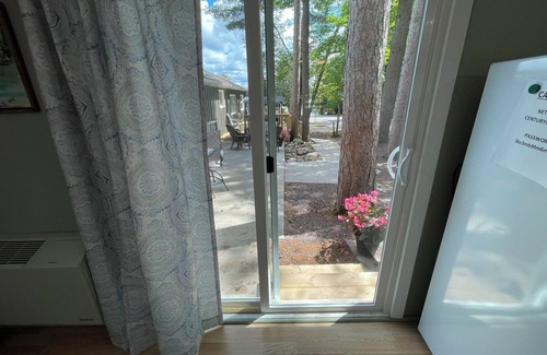 The cottage is thoughtfully designed for those who treasure intimacy and charm. Lounge on the sofa after a day of adventures, recounting memories over a meal at the dining table fit for four. The kitchenette, equipped with an air fryer/oven combo and a plug-in stove burner, ensures that you're never far from a comforting meal. The modern barn door reveals a well-appointed bathroom, ready to rejuvenate after a day's explorations.