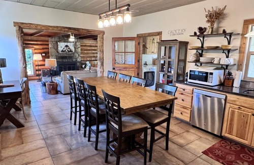 The living room, dining area and kitchen are all open, allowing you to enjoy watching your favorite movies or shows and to stay warm with the original stone hearth fireplace in those cooler months. You'll also find a fully equipped interior laundry room. Natural materials were used to accent the home’s history lending to its warmth and the charm of times gone by. Look and you’ll see features in the home that are nearly 100 years old.
