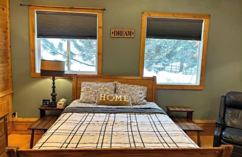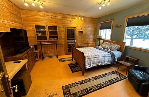 A private 2bed 1 bed space in the North wing of the main home with its own entrance. This space features a large living room area with a kitchenette, work desk, dining table & comfortable leather couches. There is a nice outdoor patio area with BBQ that leads to the pond & beach area. (wintertime offers ice-skating opportunities) A lockable door connects to a separate 2 bed 1 bath listing. If you would like to book both spaces, please inquire.