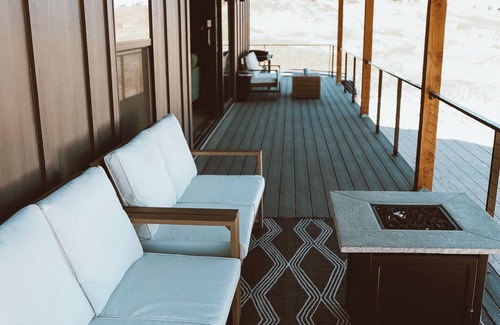 During the colder months, cozy up to the fireplace or enjoy the the outdoor fire pit on the large deck while taking in the views. A smart TV, large sectional that includes a queen bed sleeping, and black out curtains allows additional sleeping areas.