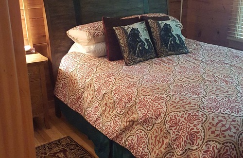 Get away from it all at Bear's Lair Cabin located on the banks of the New River in the lovely Blue Ridge Mountains of Virginia. Enjoy the peace and serenity of the woods and nature with all the comforts of home.
