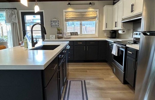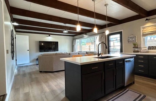 Have fun with the whole family at this stylish place just steps from campus. Our home was completely remodeled summer 2024. It has a newly landscaped, fenced yard, fire pit for outdoor fun, and plenty of space to spread out. We welcome your furry friends and have onsite parking and laundry along with a pool table for indoor fun. We know you will feel right at home with all new furnishings and all the things you would need for a getaway. Just pack your bags and we will take care of the rest.