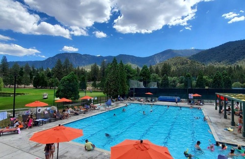 Yes, this Pine Mountain Club cabin has a swimming pool. Check the Facility Overview section for details about the pool and other available facilities.
