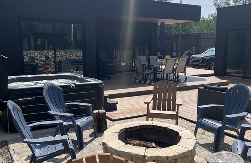 3 bedroom 1 bathroom modern cabin located just 1 Km from Clear Lake Manitoba. Washer, dryer, electric fireplace, heated concrete floors provides convenience and comfort. Large deck which is family friendly with only one step to a beautiful hot tub awaiting. Large full patio doors provides cabin with a lot of natural light. Comes fully equipped with plenty of towels, fully stocked kitchen with a wine fridge and filtered water and ice machine in the fridge. Cabin can be enjoyed all year around with air conditioning for summer and large seating outdoors on deck. Sleeps 7 comfortably.